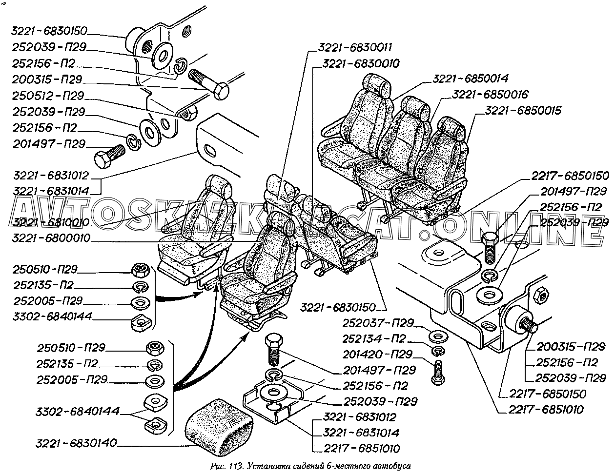 Установка сидений 6-местного автобуса ГАЗ 2217 (22171)