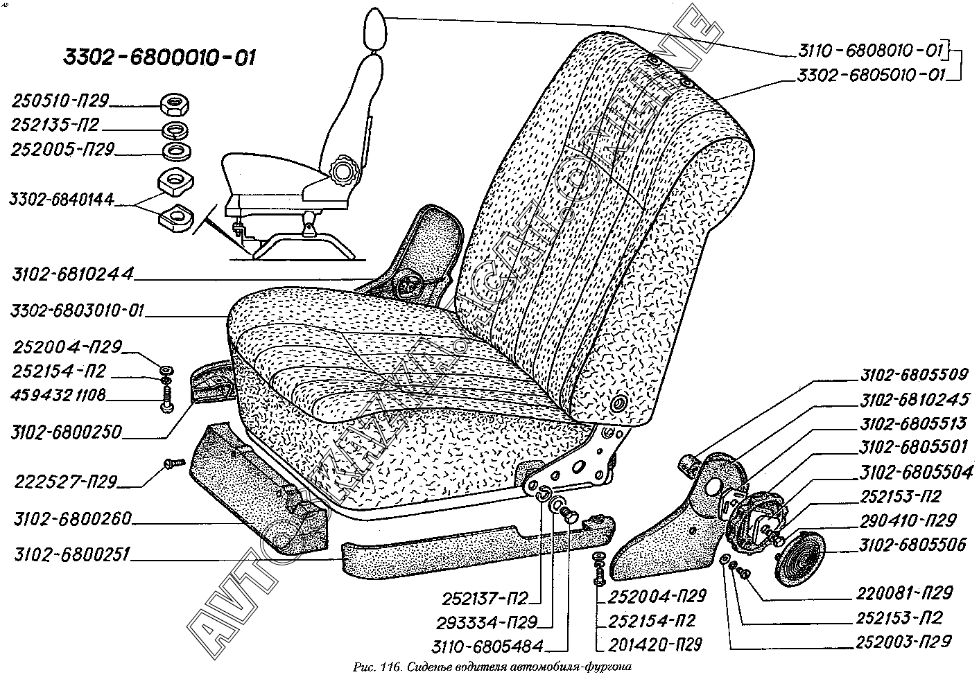 | Название детали: | Сиденье водителя с механизмом регулирования в сборе |