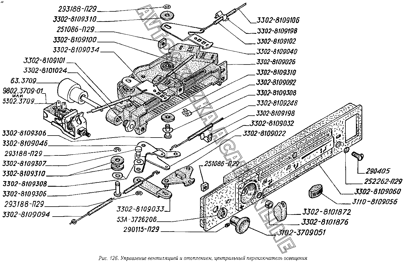 Управление вентиляцией и отоплением, центральный переключатель освещения ГАЗ 2217 (22171)