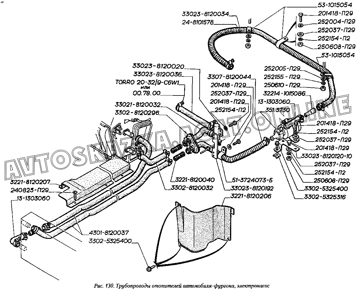 Трубопроводы отопителей автомобиля-фургона, электронасос ГАЗ 2217 (22171)