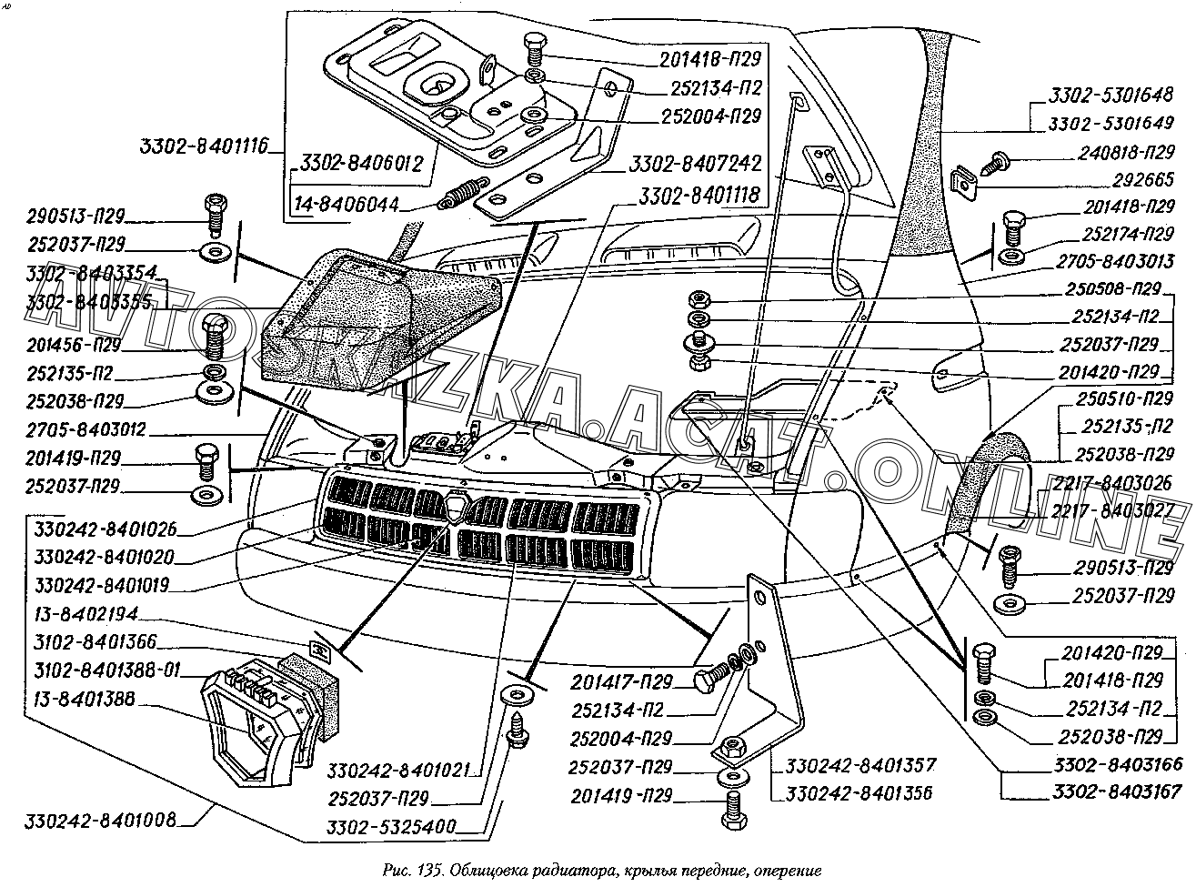 Облицовка радиатора, крылья передние, оперение ГАЗ 2217 (22171)