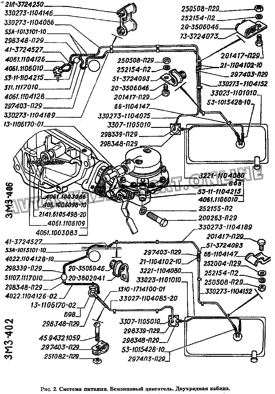 Система питания. Бензиновый двигатель. Двухрядная кабина. ГАЗ 330273 (только оригинальные запчасти на полноприводную "ГАЗель")