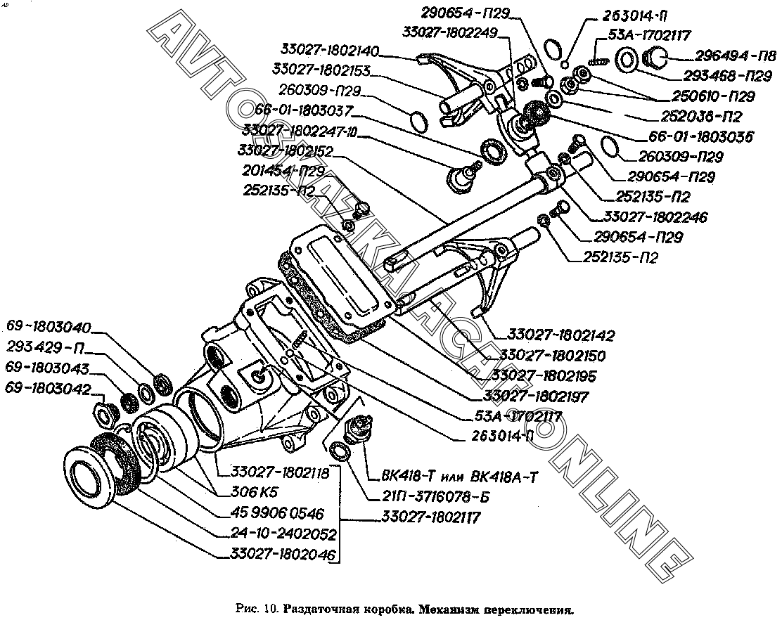 Раздаточная коробка. Механизм переключения. ГАЗ 330273 (только оригинальные запчасти на полноприводную "ГАЗель")