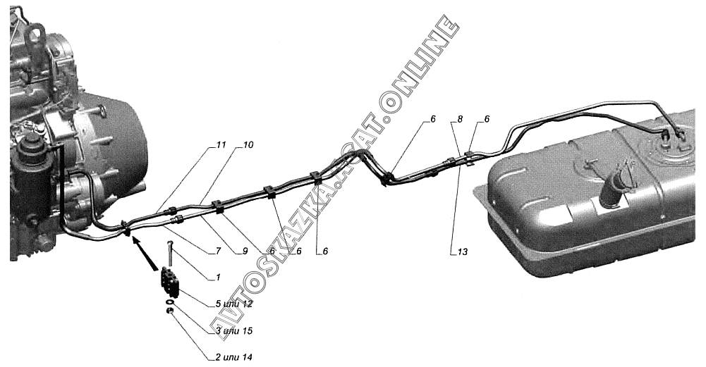 Установка топливопроводов 27527-1104001-20 ГАЗ ISF 2.8 (ISF 2.8 (для автомобилей ГАЗ 3302))