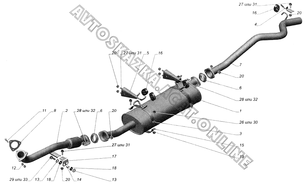 Установка системы выпуска газов 27527-1200001-70 ГАЗ ISF 2.8 (ISF 2.8 (для автомобилей ГАЗ 3302))