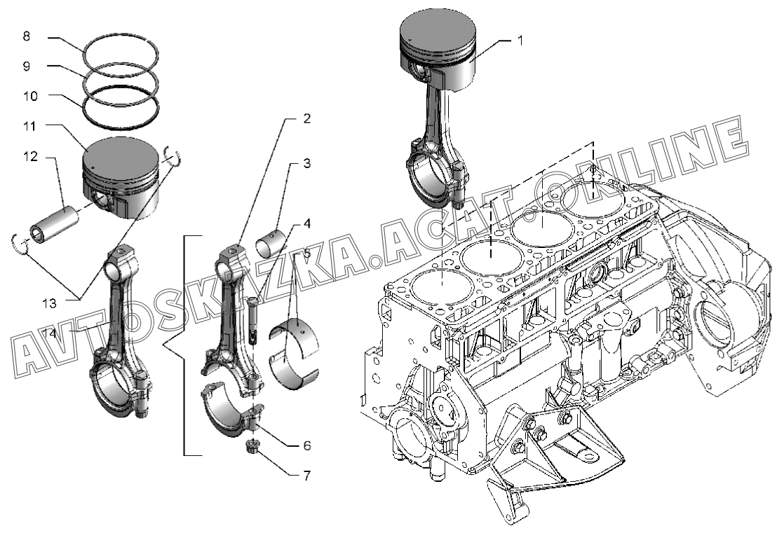 Поршень и шатун ГАЗ А274 (А274, А274-01, А274-02, А274-03, А274-04, А2747, А2747-01, А2747-02, А274-20, А274-21, А274-22, А274-23, А274-24, А274-10, А274-12, А274-30, А274-32 (Euro-4))