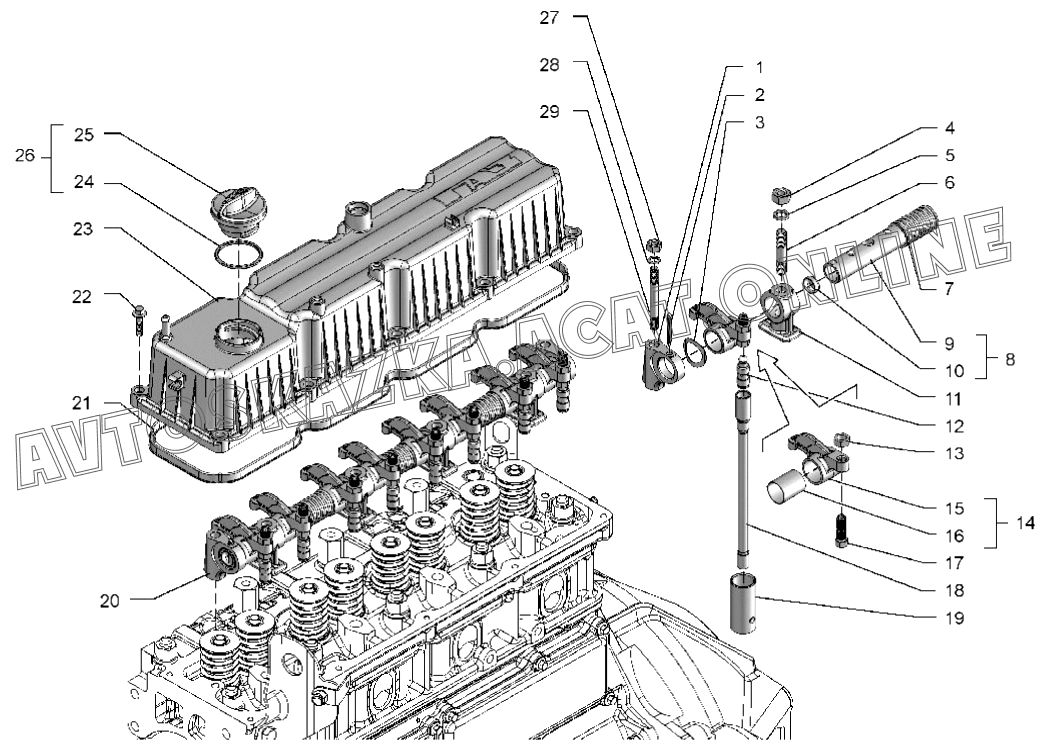 | Название детали: | Ось коромысел с заглушками в сборе |