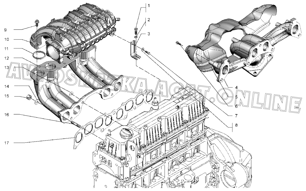 Газопроводы впускной и выпускной ГАЗ А274 (А274, А274-01, А274-02, А274-03, А274-04, А2747, А2747-01, А2747-02, А274-20, А274-21, А274-22, А274-23, А274-24, А274-10, А274-12, А274-30, А274-32 (Euro-4))