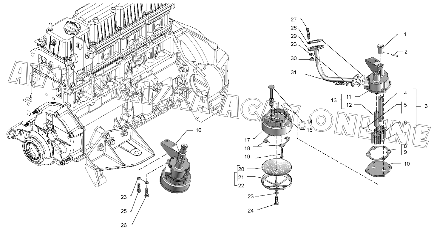| Название детали: | Корпус масляного насоса в сборе |