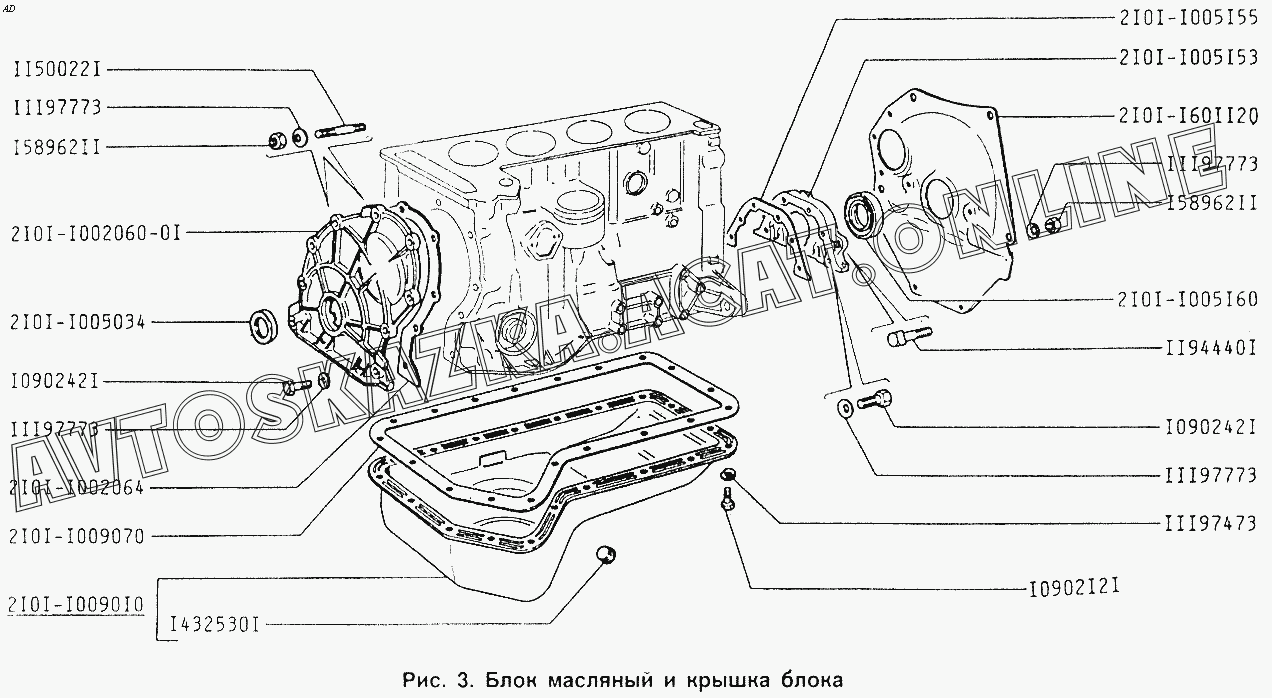 Блок масляный и крышки блока ИЖ 2126 (2126 "Ода" с двигателями УЗАМ, ВАЗ-2106)
