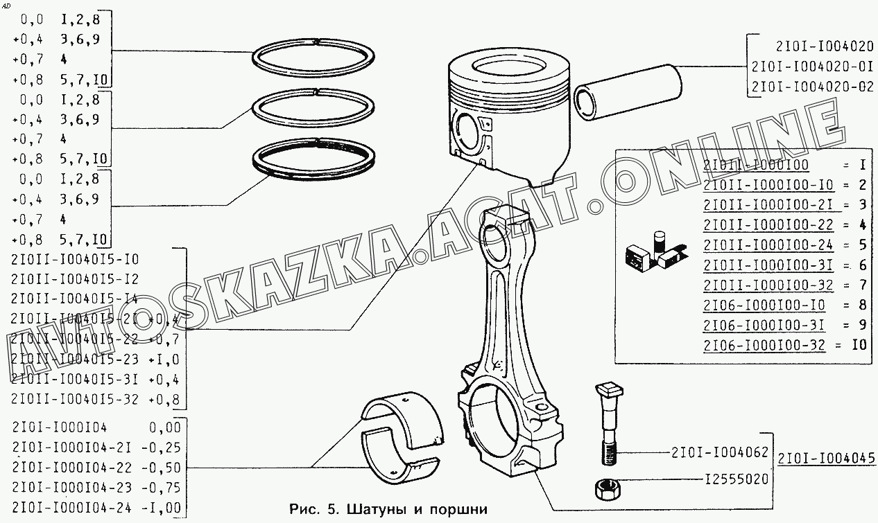 Шатуны и поршни ИЖ 2126 (2126 "Ода" с двигателями УЗАМ, ВАЗ-2106)