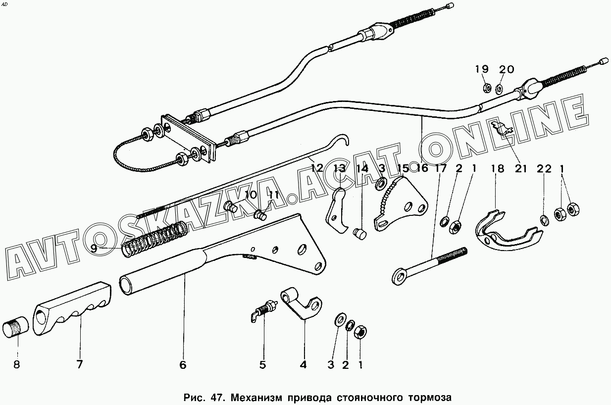 Механизм привода стояночного тормоза ИЖ 2126 (2126 "Ода" с двигателями УЗАМ, ВАЗ-2106)