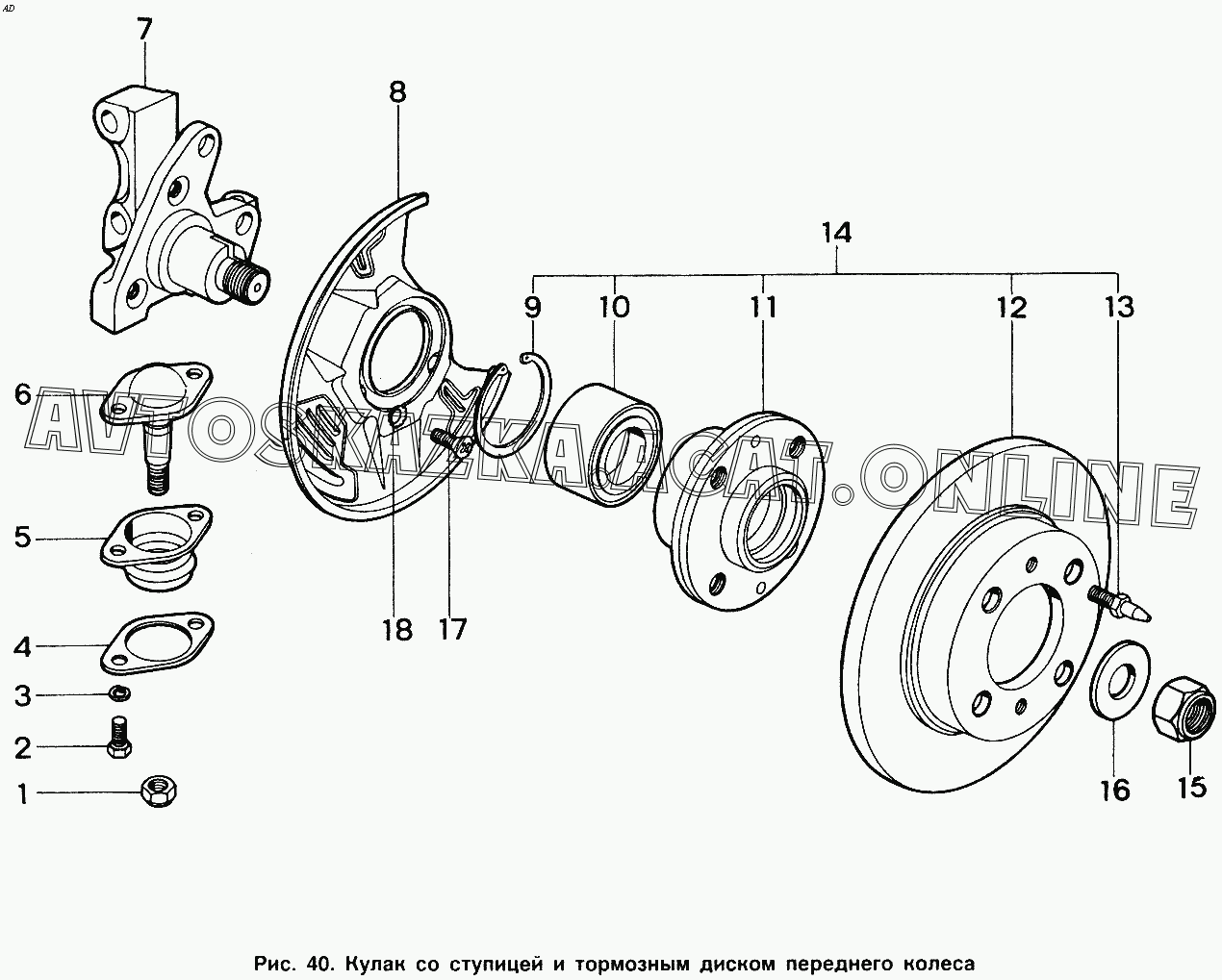 Кулак со ступицей и тормозным диском переднего колеса ИЖ 2126 (2126 "Ода" с двигателями УЗАМ, ВАЗ-2106)