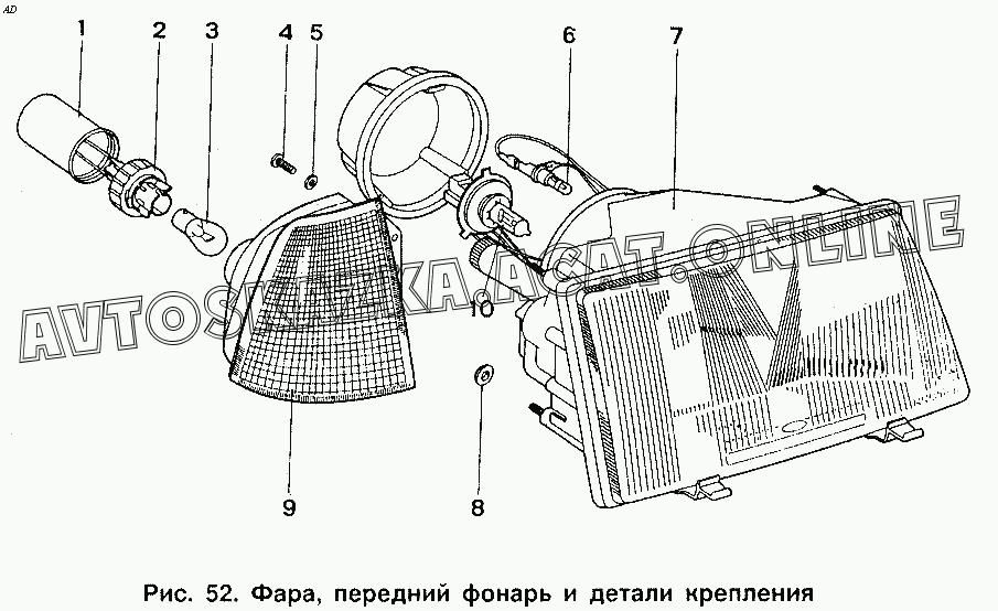 Фара, передний фонарь и детали крепления ИЖ 2126 (2126 "Ода" с двигателями УЗАМ, ВАЗ-2106)
