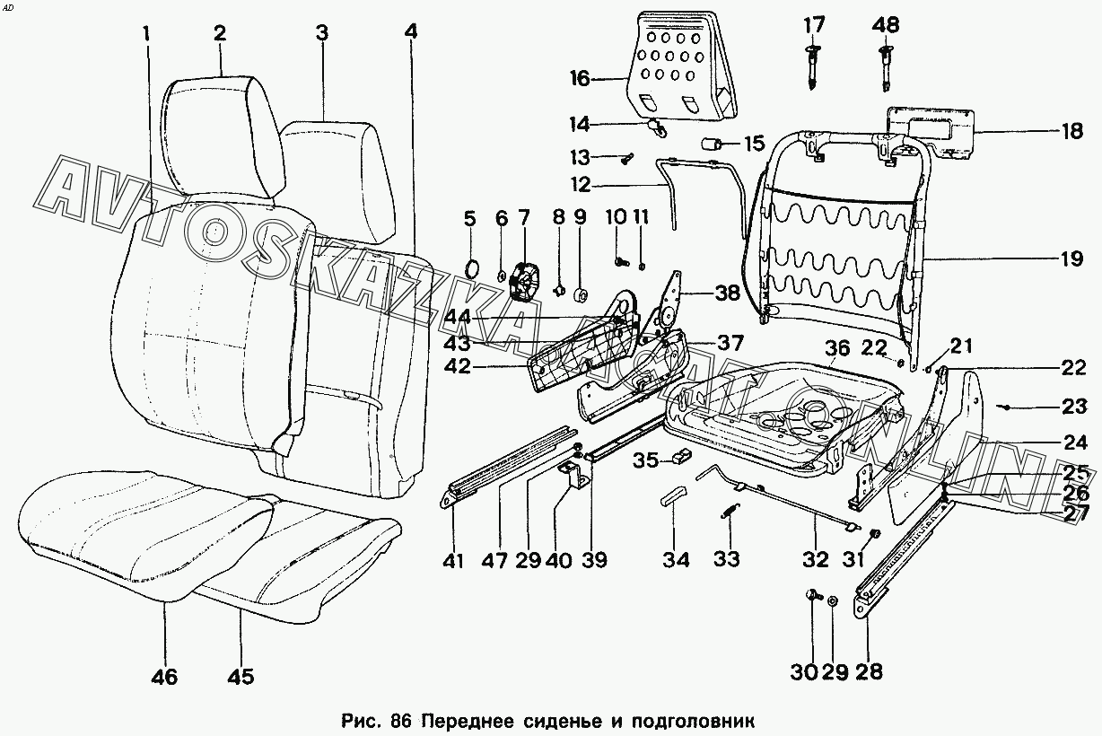 Переднее сидение и подголовник ИЖ 2126 (2126 "Ода" с двигателями УЗАМ, ВАЗ-2106)