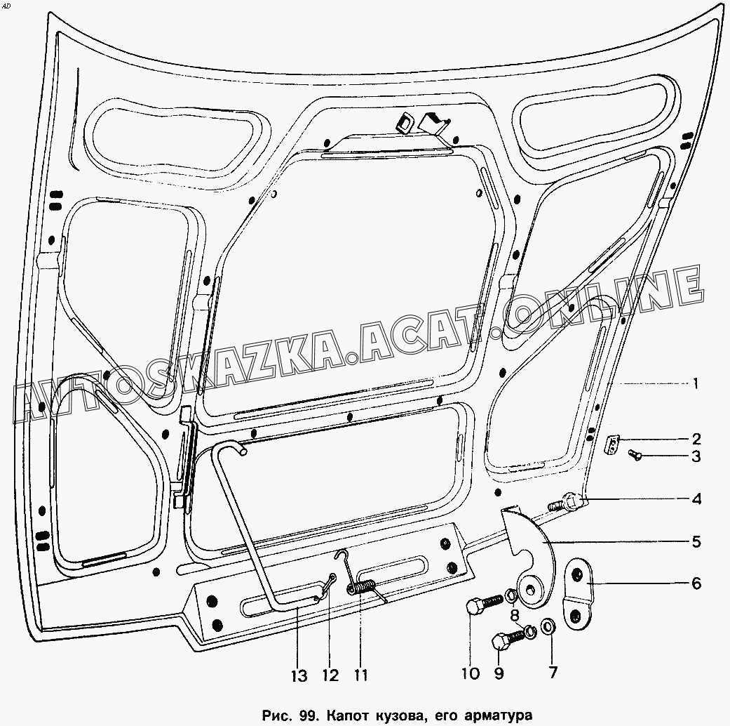 Капот кузова, его арматура ИЖ 2126 (2126 "Ода" с двигателями УЗАМ, ВАЗ-2106)