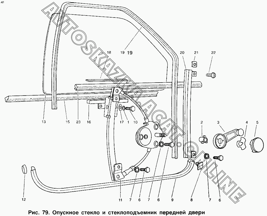Опускное стекло и стеклоподъемник передней двери ИЖ 2126 (2126 "Ода" с двигателями УЗАМ, ВАЗ-2106)