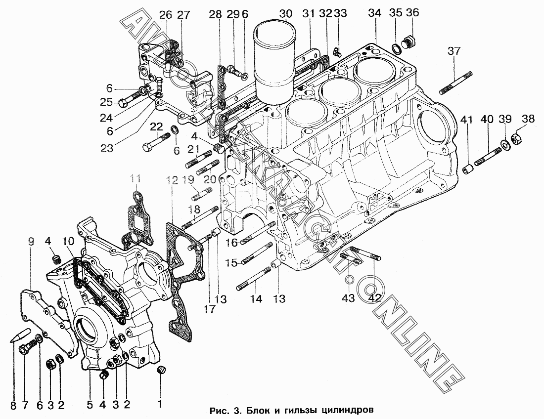Блок и гильзы цилиндров ИЖ 2717 (2717, 27171 с двигателями УЗАМ-331, ВАЗ-2106)