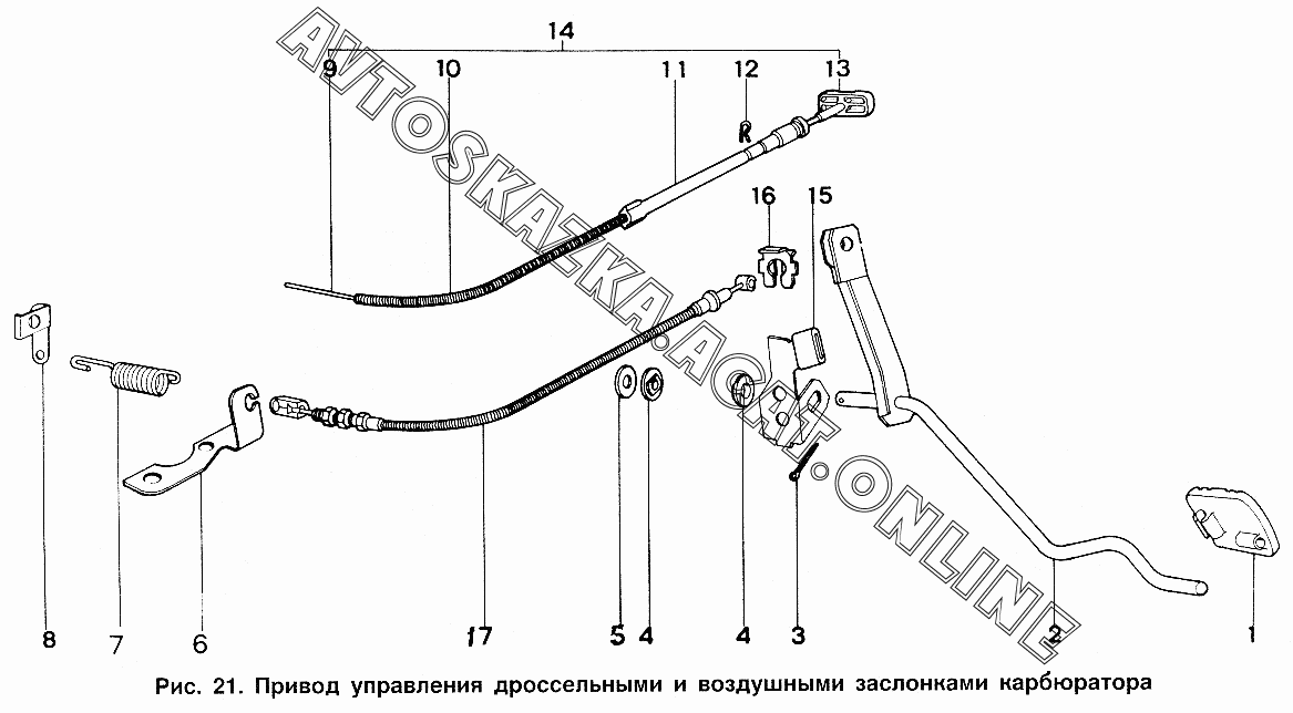 Привод управления дроссельными и воздушными заслонками ИЖ 2717 (2717, 27171 с двигателями УЗАМ-331, ВАЗ-2106)