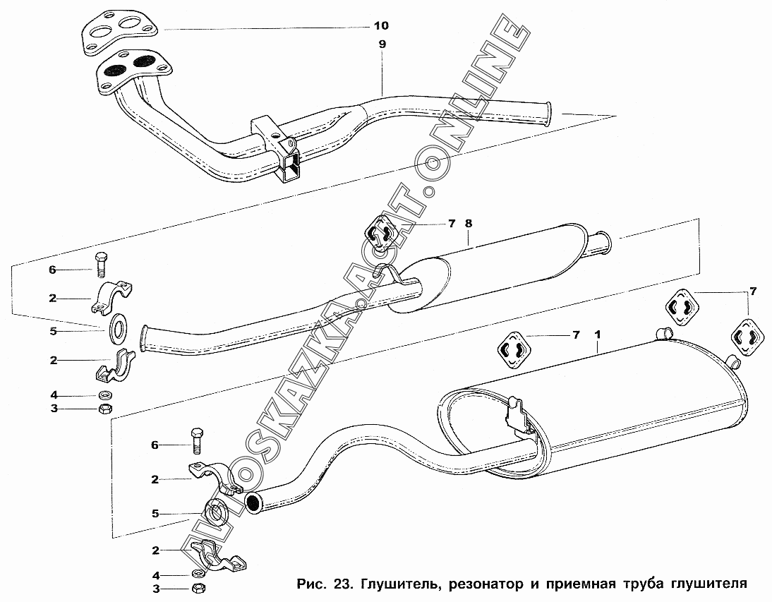Глушитель, резонатор и приемная труба глушителя ИЖ 2717 (2717, 27171 с двигателями УЗАМ-331, ВАЗ-2106)