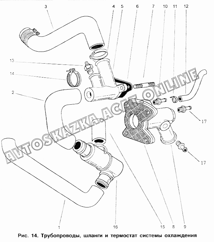 Трубопроводы, шланги и термостат системы охлаждения ИЖ 2717 (2717, 27171 с двигателями УЗАМ-331, ВАЗ-2106)