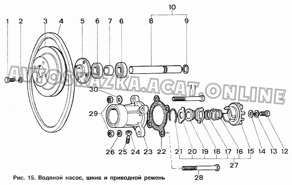 Водяной насос, шкив и приводной ремень ИЖ 2717 (2717, 27171 с двигателями УЗАМ-331, ВАЗ-2106)