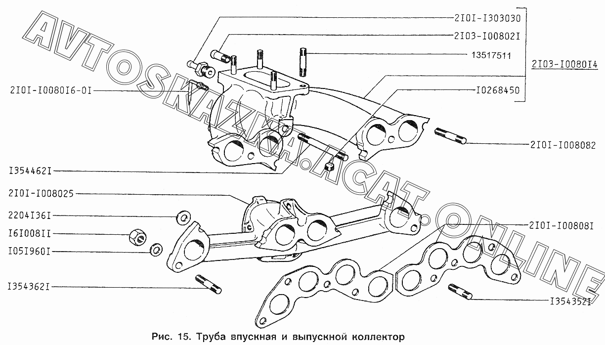 Труба впускная и выпускной коллектор ИЖ 2717 (2717, 27171 с двигателями УЗАМ-331, ВАЗ-2106)