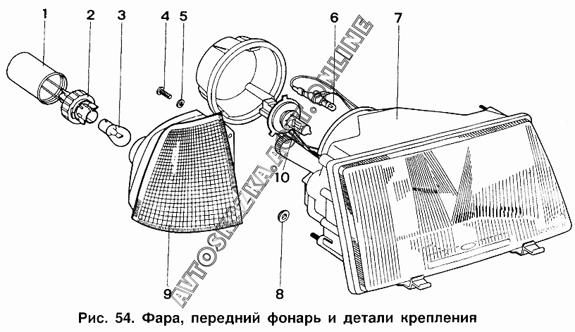 Фара, передний фонарь и детали крепления ИЖ 2717 (2717, 27171 с двигателями УЗАМ-331, ВАЗ-2106)