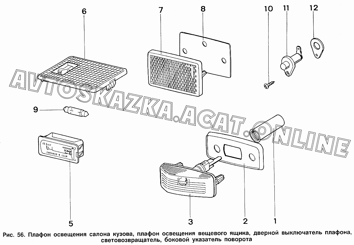 Плафон освещения салона кузова, световозвращатель, боковой указатель поворота ИЖ 2717 (2717, 27171 с двигателями УЗАМ-331, ВАЗ-2106)