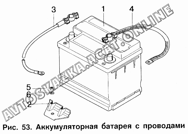 Аккумуляторная батарея с проводами ИЖ 2717 (2717, 27171 с двигателями УЗАМ-331, ВАЗ-2106)