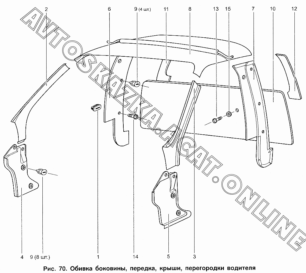 Обивка боковин, передка, крышки, перегородки водителя ИЖ 2717 (2717, 27171 с двигателями УЗАМ-331, ВАЗ-2106)