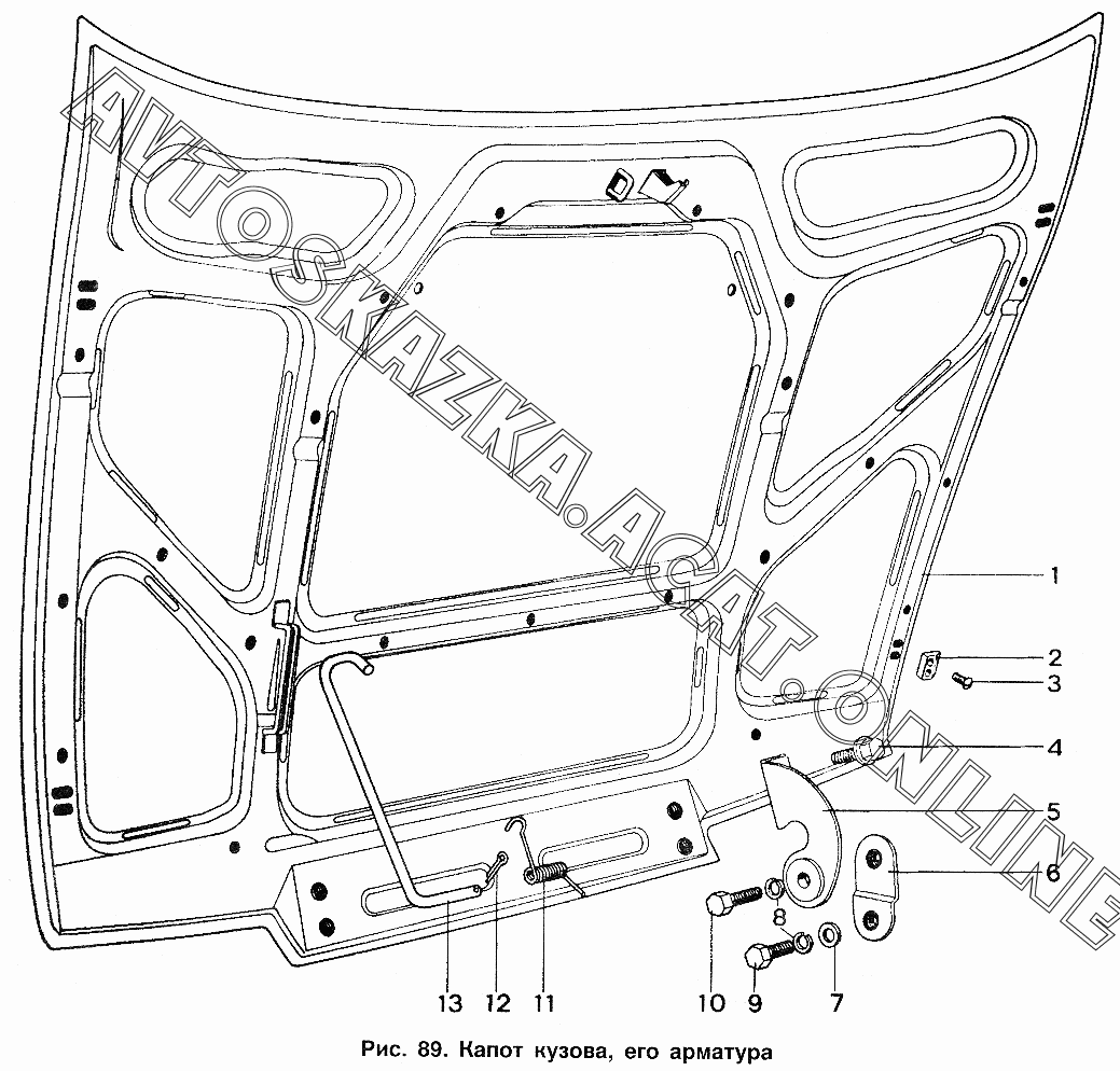 Капот кузова, его арматура ИЖ 2717 (2717, 27171 с двигателями УЗАМ-331, ВАЗ-2106)