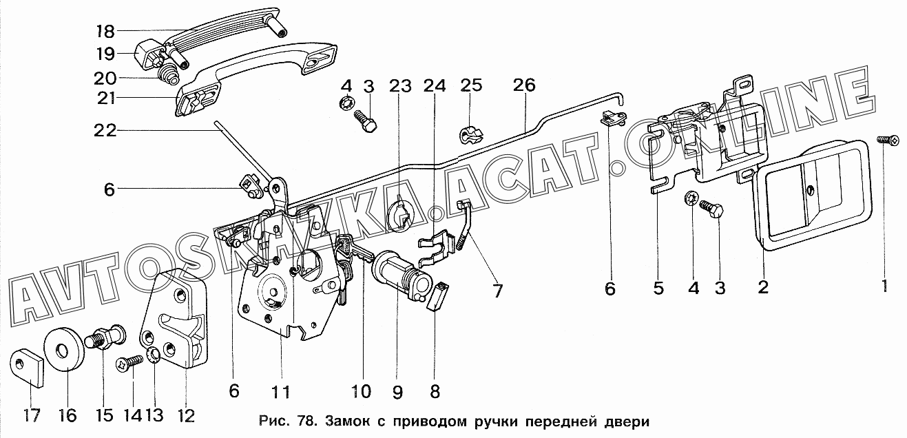 Замок с приводом ручки передней двери ИЖ 2717 (2717, 27171 с двигателями УЗАМ-331, ВАЗ-2106)