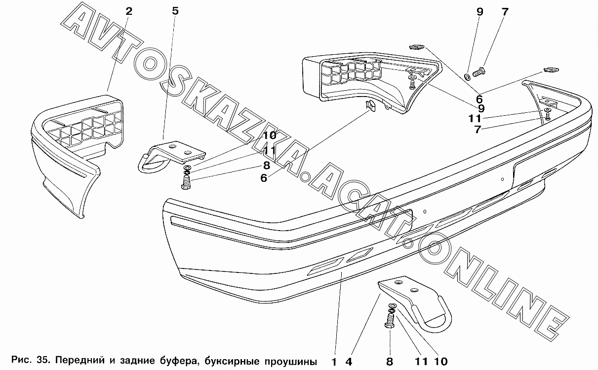 Передний и задний буфера, буксирные проушины ИЖ 2717 (2717, 27171 с двигателями УЗАМ-331, ВАЗ-2106)