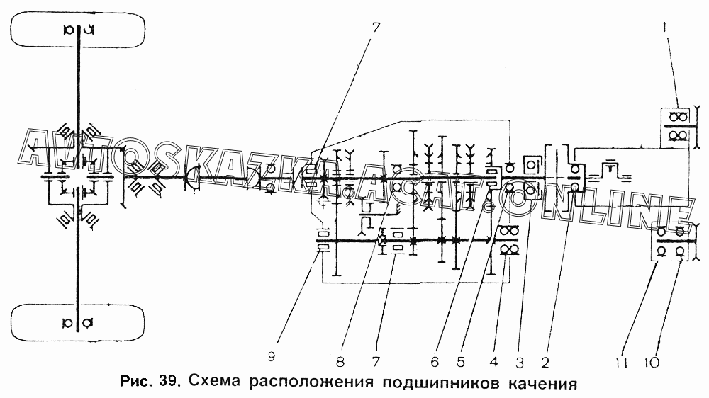 Схема расположения подшипников качения для двигателя ВАЗ-2106 ИЖ 2717 (2717, 27171 с двигателями УЗАМ-331, ВАЗ-2106)