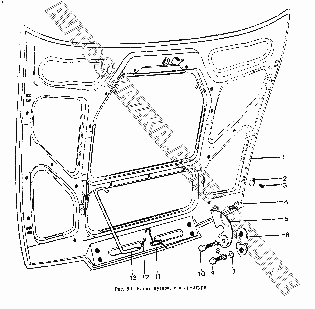 Капот кузова, его арматура ИЖ 2126
