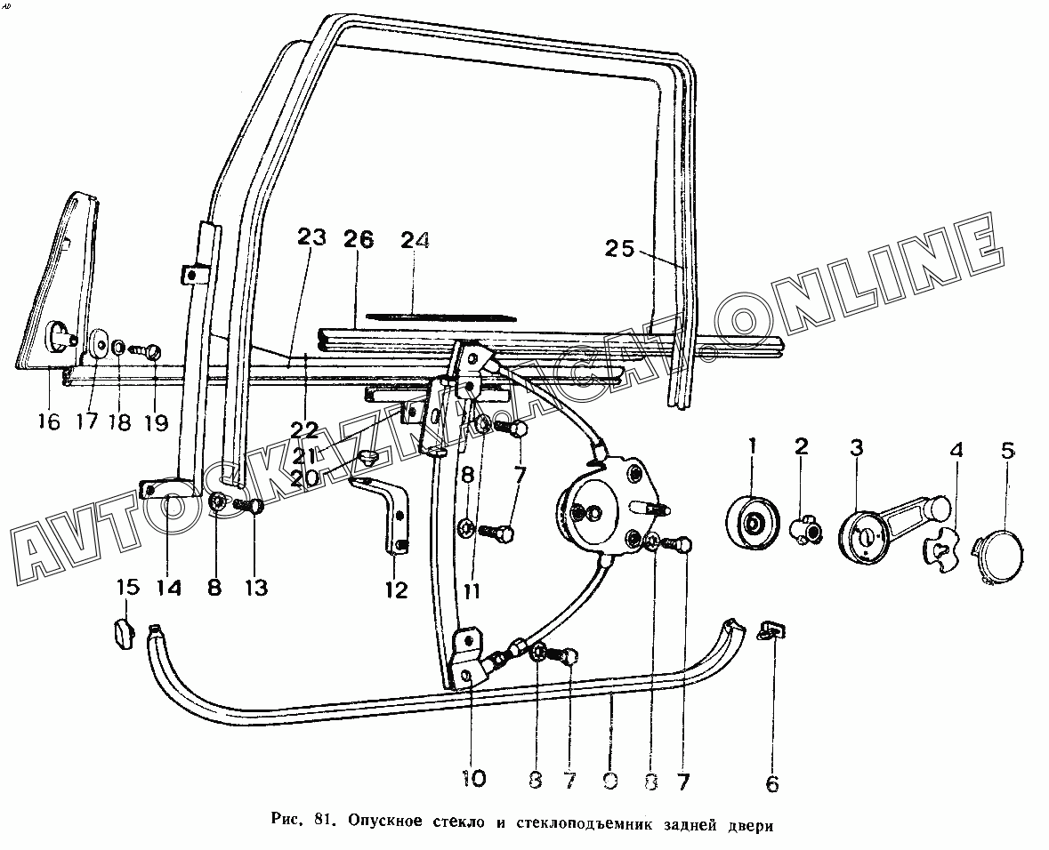Опускное стекло и стеклоподъемник задней двери ИЖ 2126