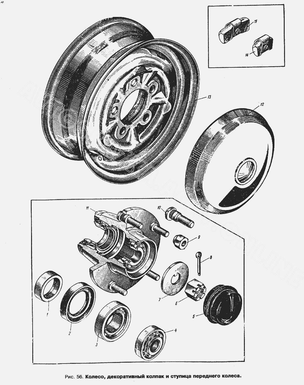 Колесо, декоративный колпак и ступица переднего колеса ИЖ 434 (434П)