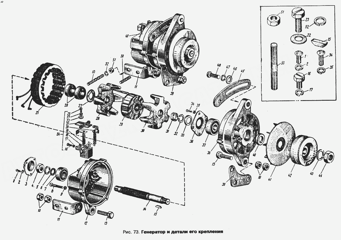 Генератор и детали его крепления ИЖ 434 (434П)