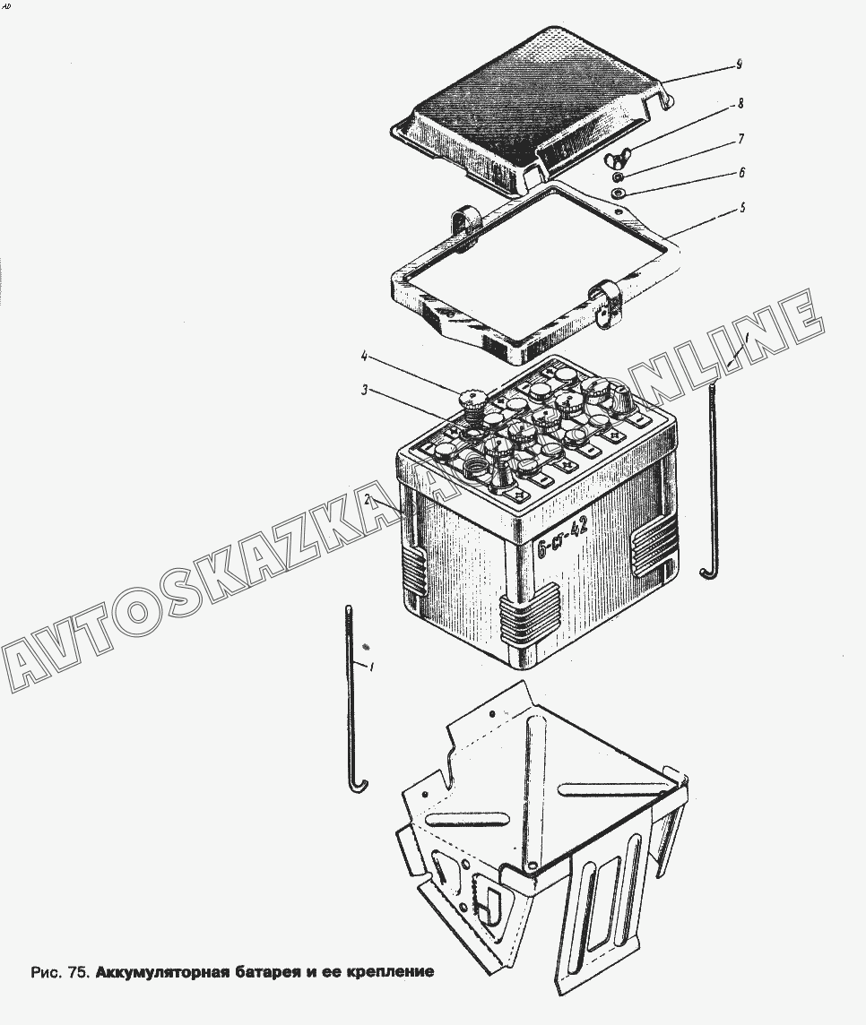 Аккумуляторная батарея и ее крепление ИЖ 434 (434П)