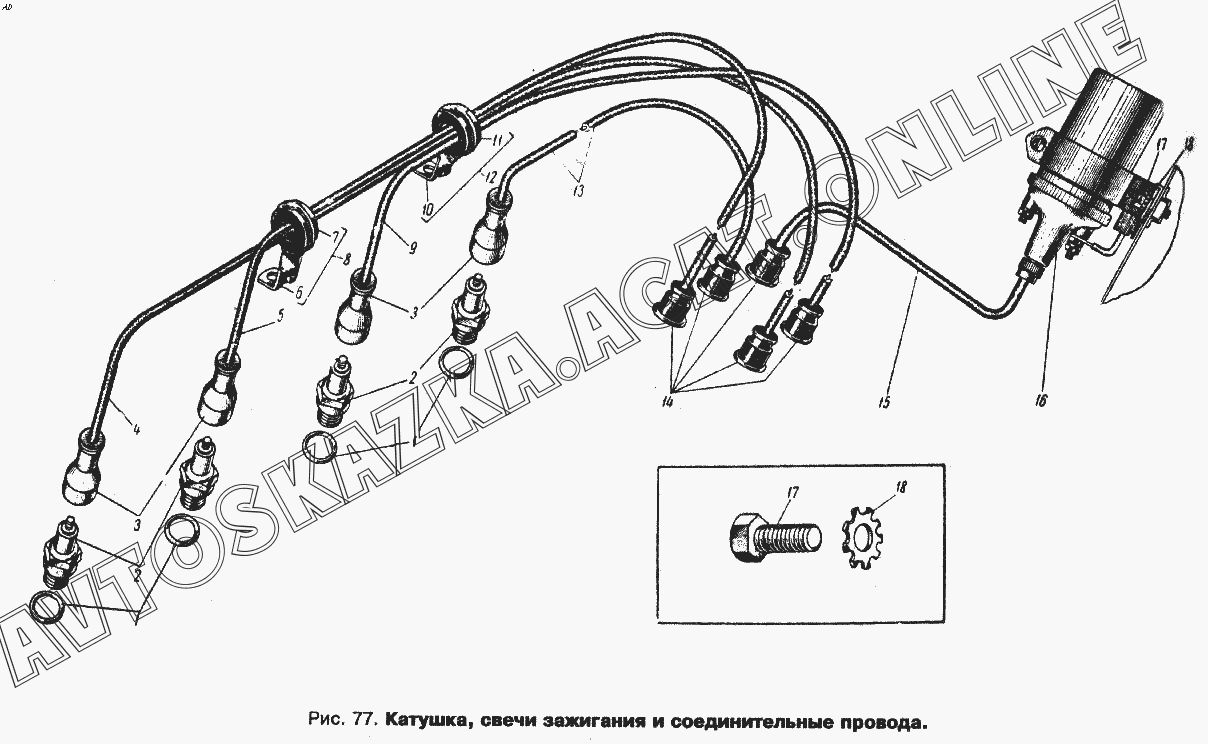 Катушка, свечи зажигания и соединительные провода ИЖ 434 (434П)