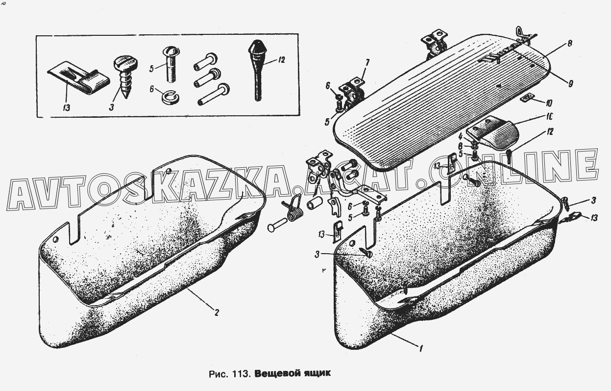 | Название детали: | Петля дверцы вещевого ящика в сборе |