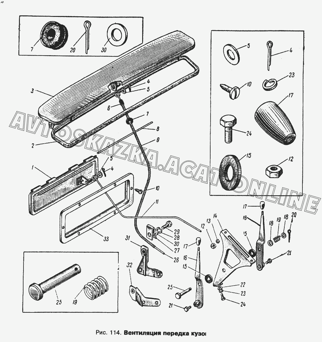 | Название детали: | Ручка рычагов тяг крышек вентиляционного люка передка кузова и люка забора воздуха из кузова |
