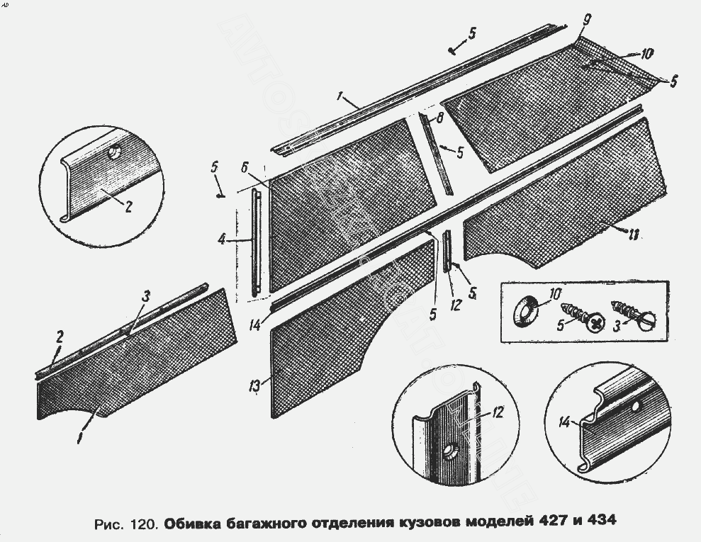Обивка багажного отделения кузова автомобилей моделей 427 и 434 ИЖ 434 (434П)