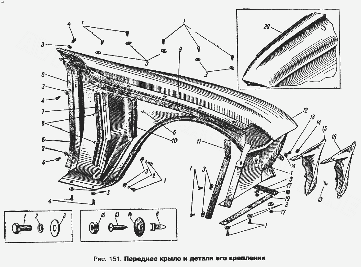 Переднее крыло и детали его крепления ИЖ 434 (434П)