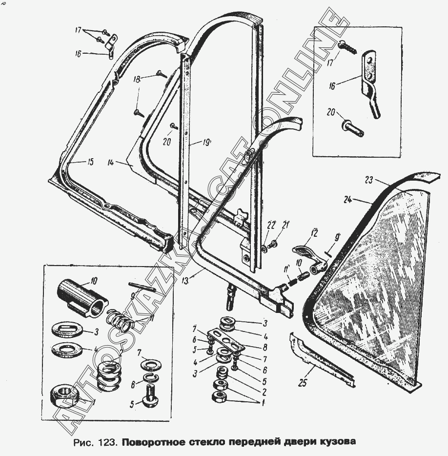 Поворотное стекло передней двери кузова ИЖ 434 (434П)
