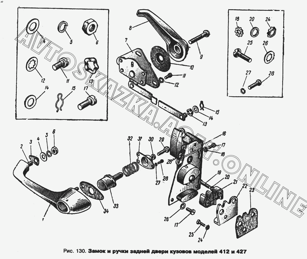 Замок и ручка задней двери кузовов моделей 412 и 427 ИЖ 434 (434П)