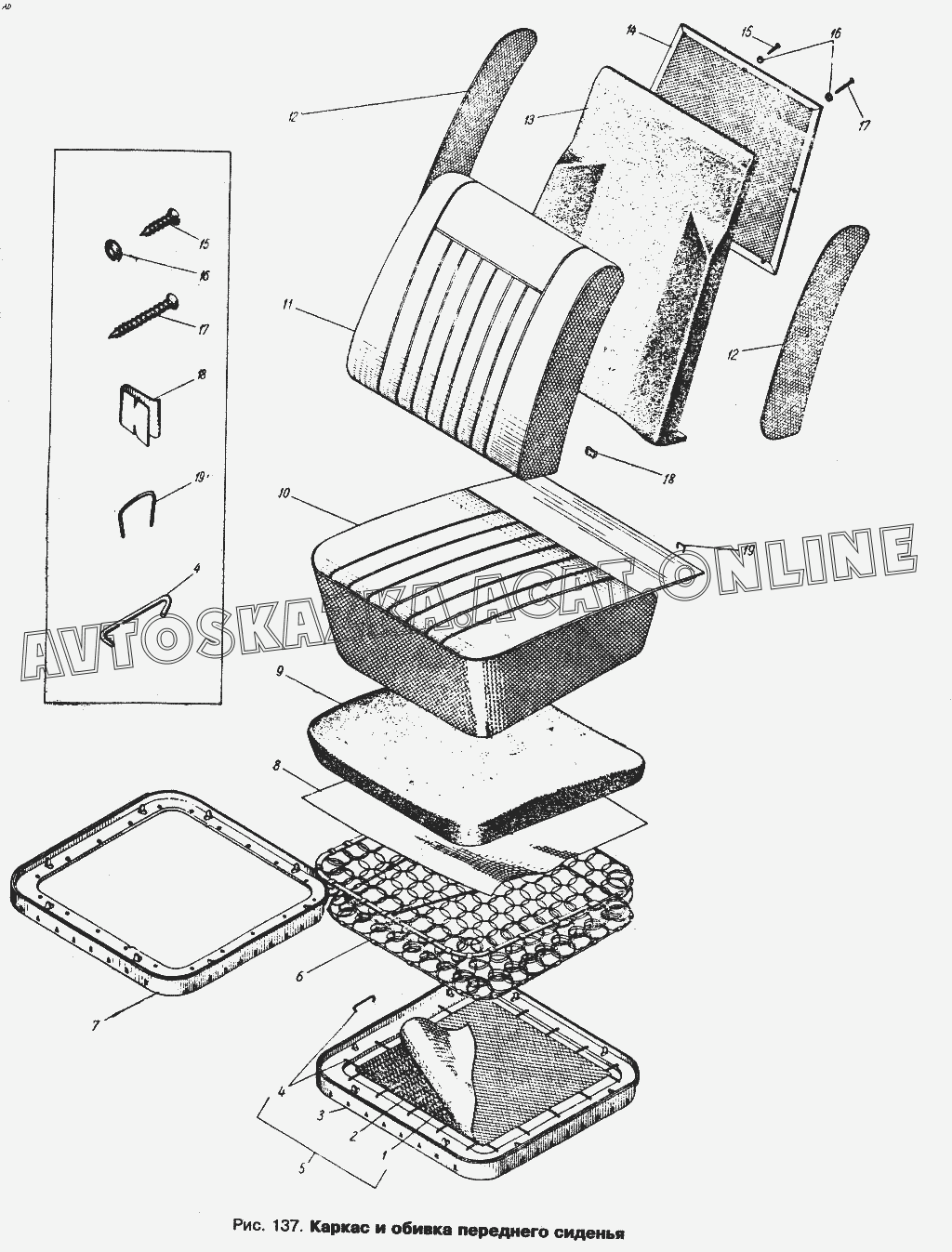 Каркас и обивка переднего сидения ИЖ 434 (434П)