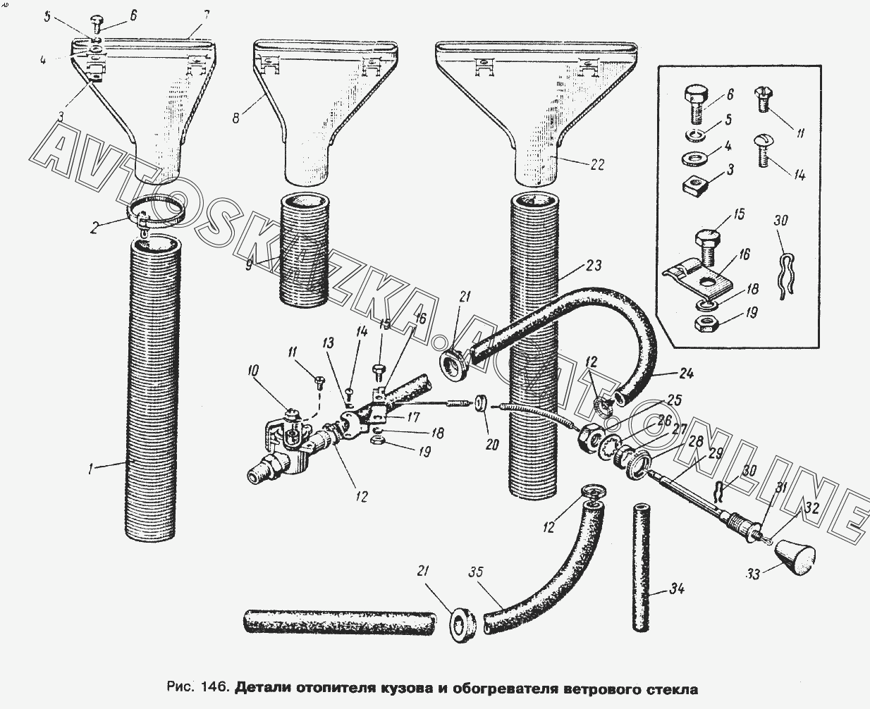 Детали отопителя кузова и обогревателя ветрового стекла ИЖ 434 (434П)