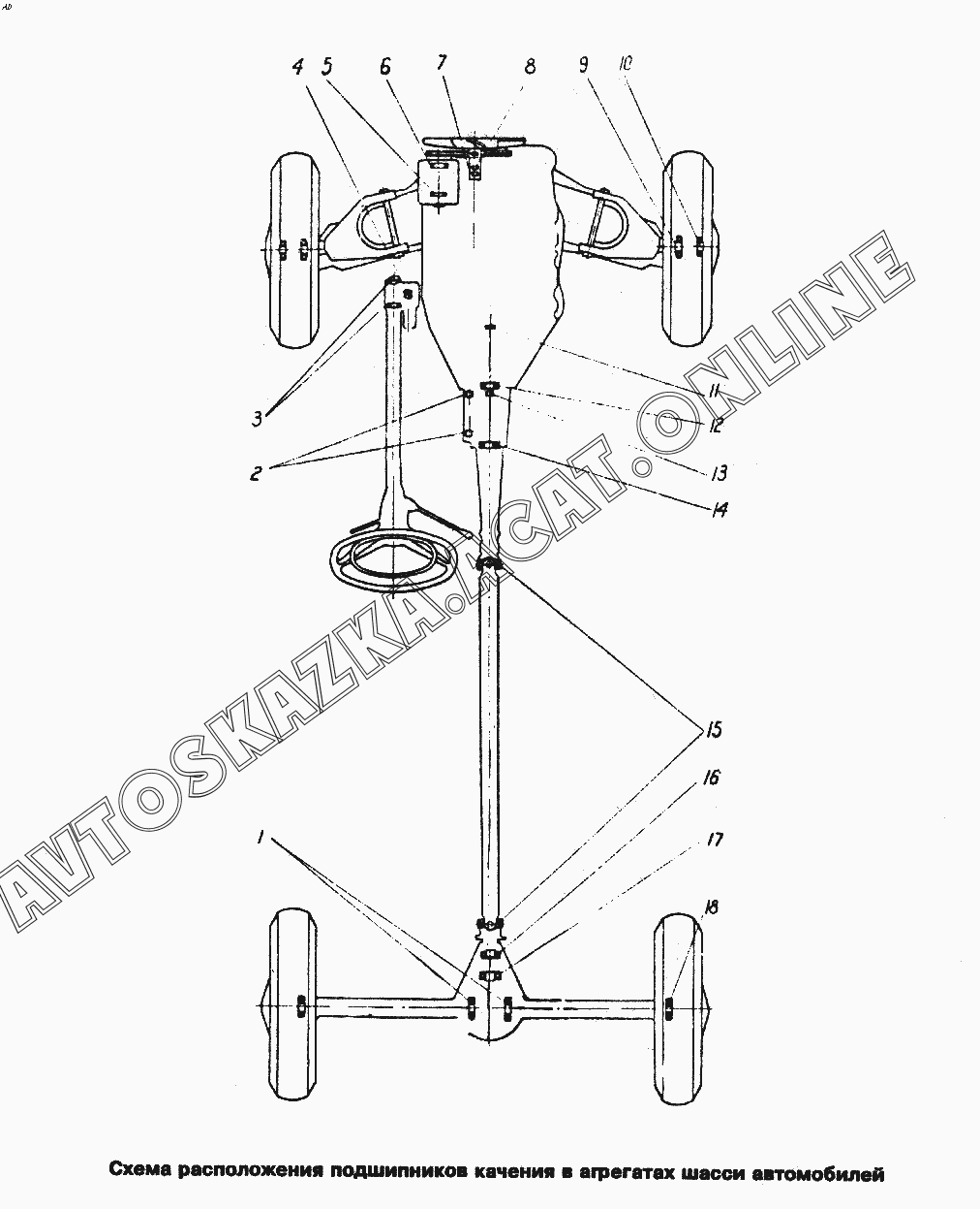 Схема расположения подшипников качения в агрегатах шасси автомобилей ИЖ 434 (434П)